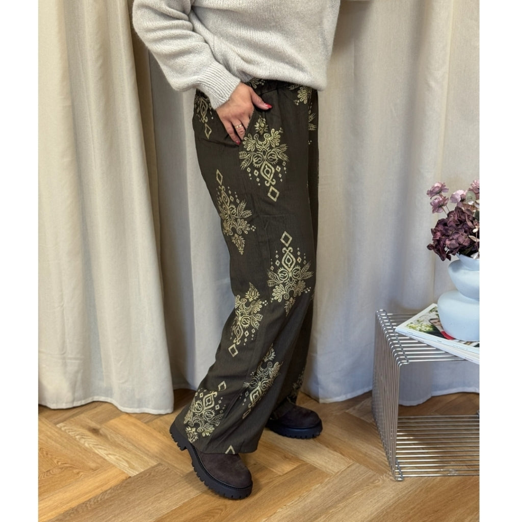 Fineste bukser fra Marta du Château med et flot print. Bukserne har elastik i taljen, samt to lommer. De kan styles med en top, strik eller blusen, som passer til.