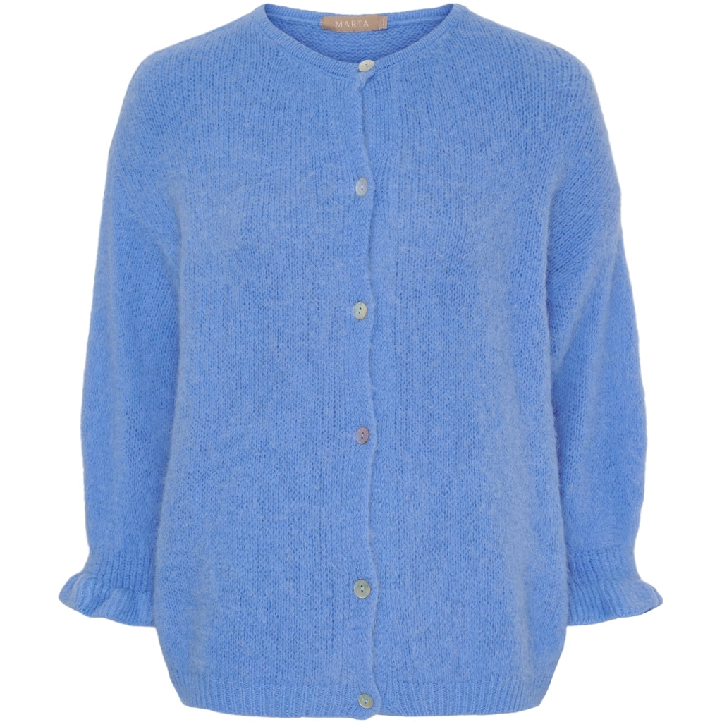 Sød strikket cardigan fra Marta med flæsedetaljer ved ærme. Cardiganen har fine knapper langs fronten og er med 3/4 ærmer. Helt perfekt til hverdagsbrug. Style den med både jeans, habitbukser og nederdele - mulighederne er mange.