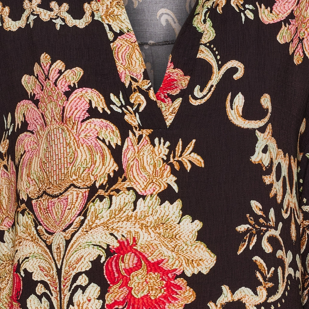 Smuk V-hals kjole fra Marta Du Château i et flot print. Kjolen har en løs pasform og 3/4 lange ærmer. Den er helt perfekt til både hverdag med strømpebukser og sneakers eller til finere brug med en stilet.