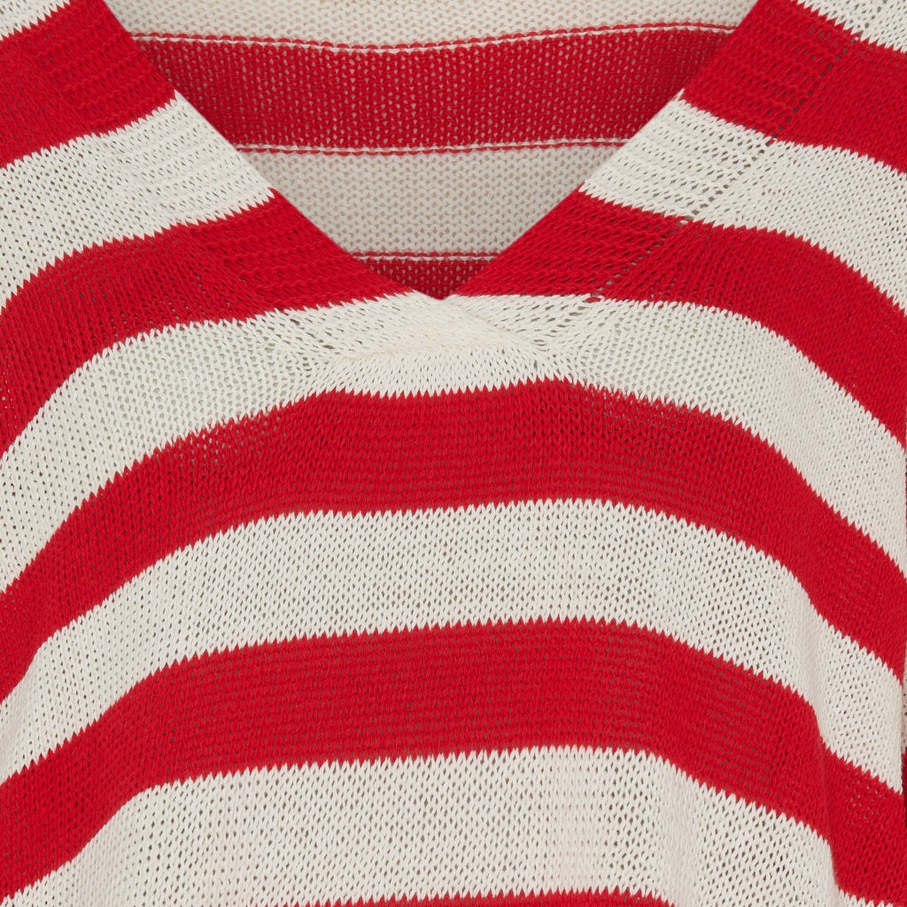 Skøn let stribet strik fra Marta Du Cháteau. Materiale: 100% BomuldS/MBrystmål: 110 cmLængde: 60 cm foran, 63 cm bagtil