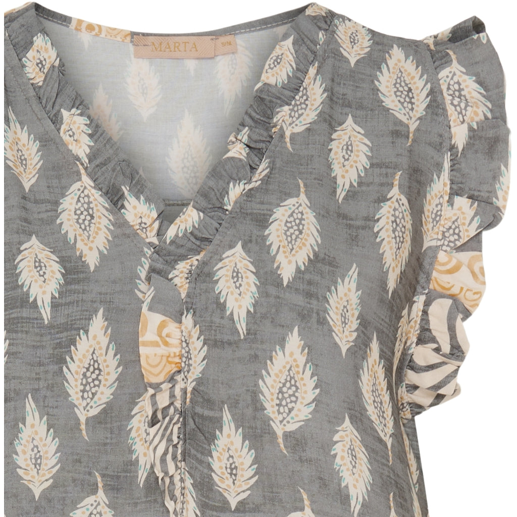 Sød sommerkjole fra Marta med flæsekant ved ærmet.Materiale: 100% viscose. Brystmål (omkreds)S/M: ca. 108 cm.L/XL: ca. 112 cm.LængdeS/M: ca. 120 cm. L/XL: ca. 124cm.