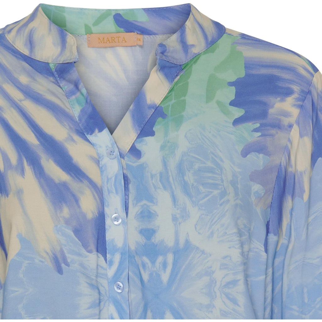 Fin printet bluse fra Marta Du Cháteau med knapper foran.S/MBryst: ca. 114cm.Længde: ca. 70 cm.L/XLBryst: ca. 118 cm.Længde: ca. 74 cm.Materiale: 100% Viscose.