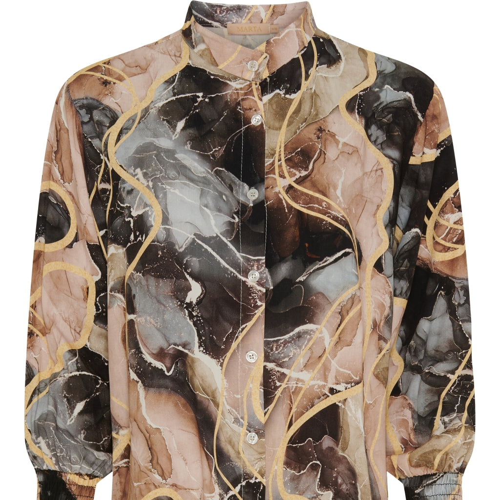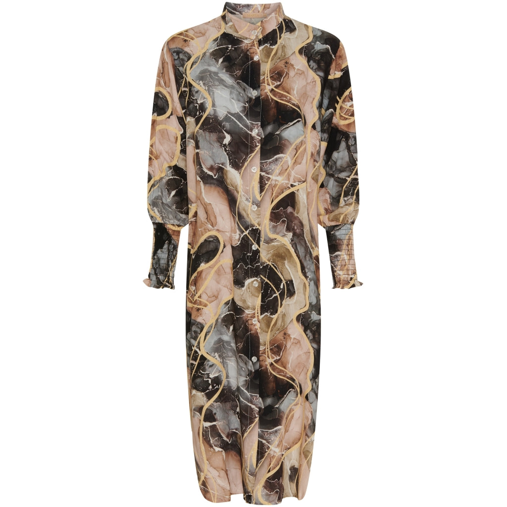Smuk printet gennemknappet kjole fra Marta Du Château. Kjolen har smock ved ærmerne og er super feminin og elegant.